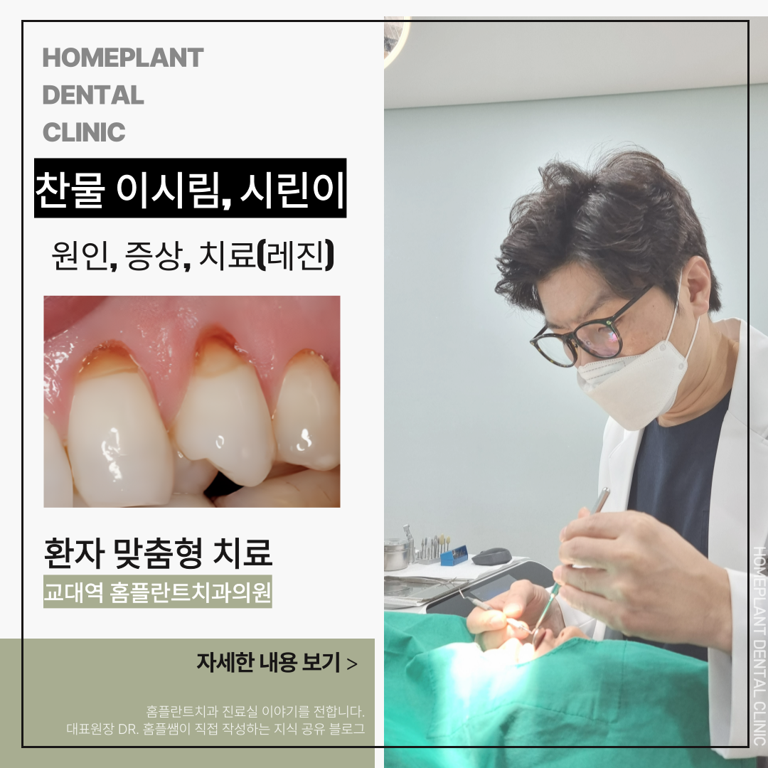 안녕하세요. 시린이 예방과 보존치료를 많이 하는 교대역 홈플란트치과 대표원장입니다.
